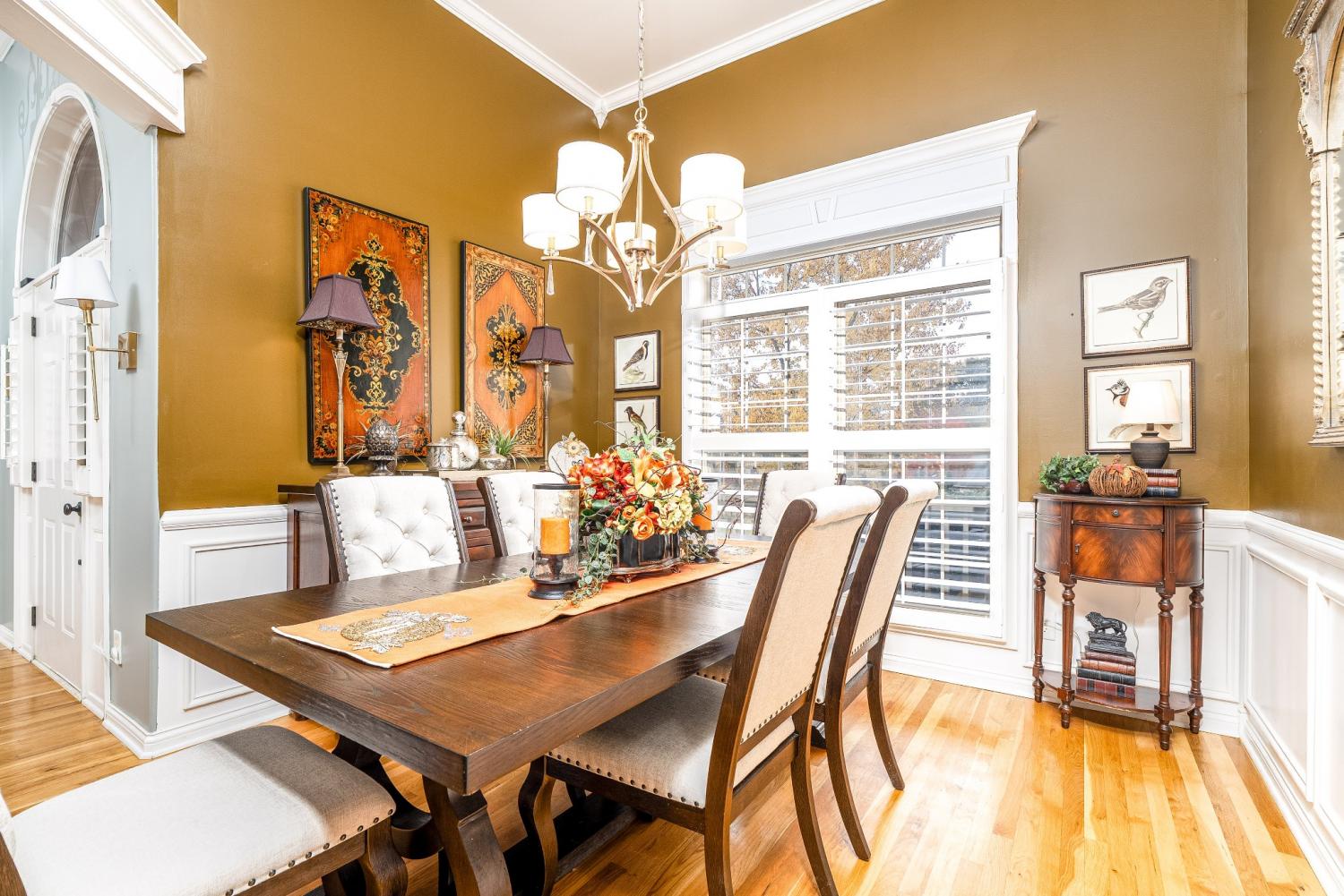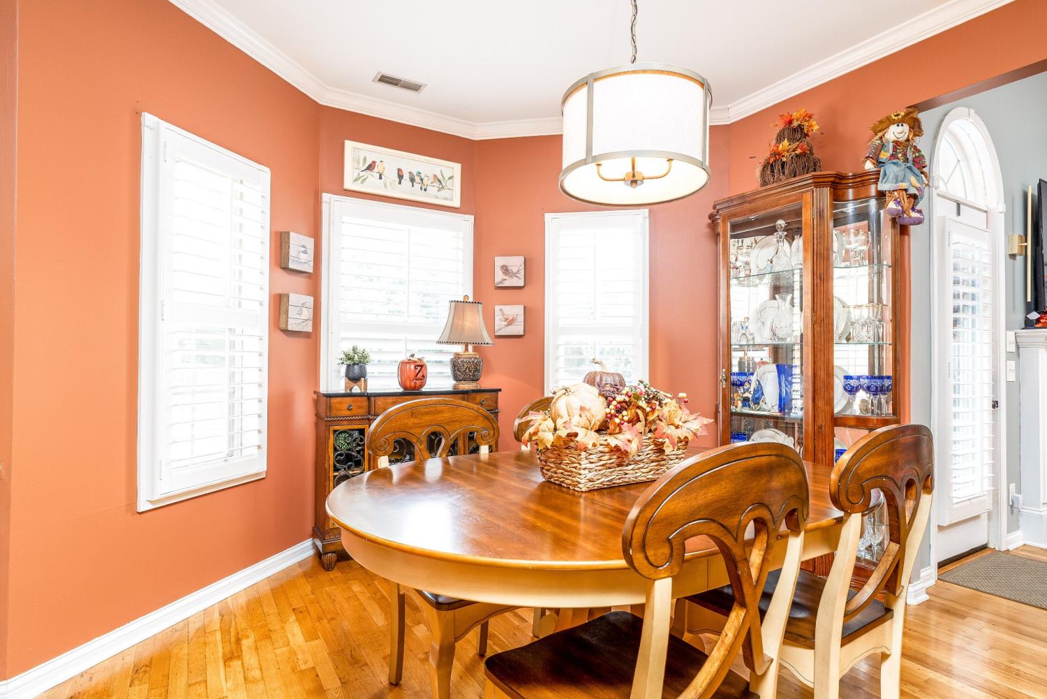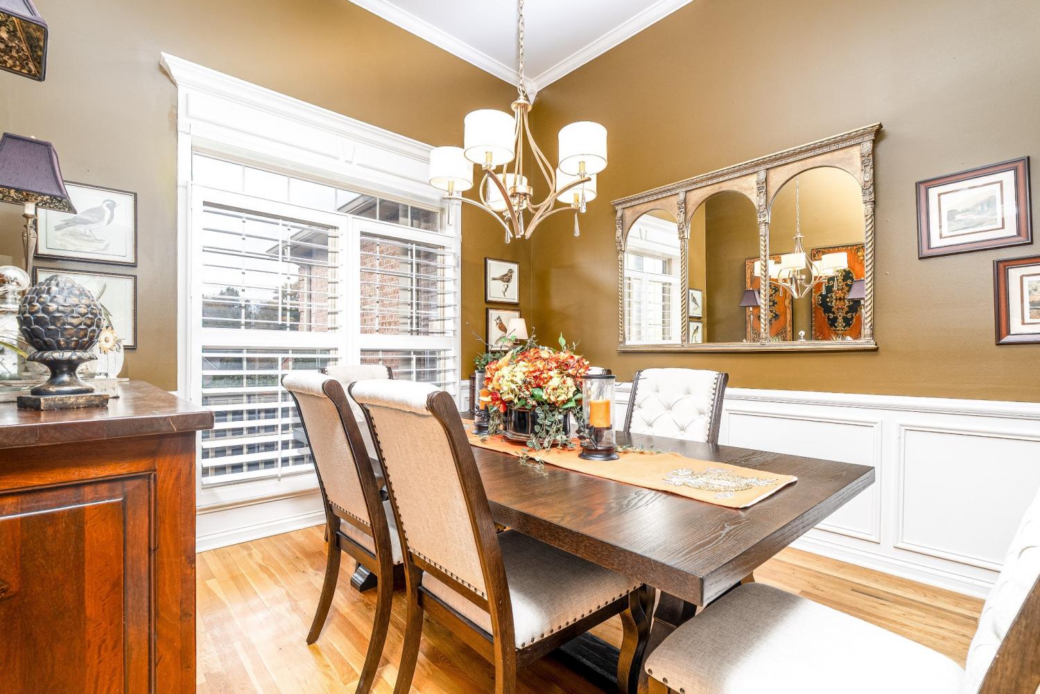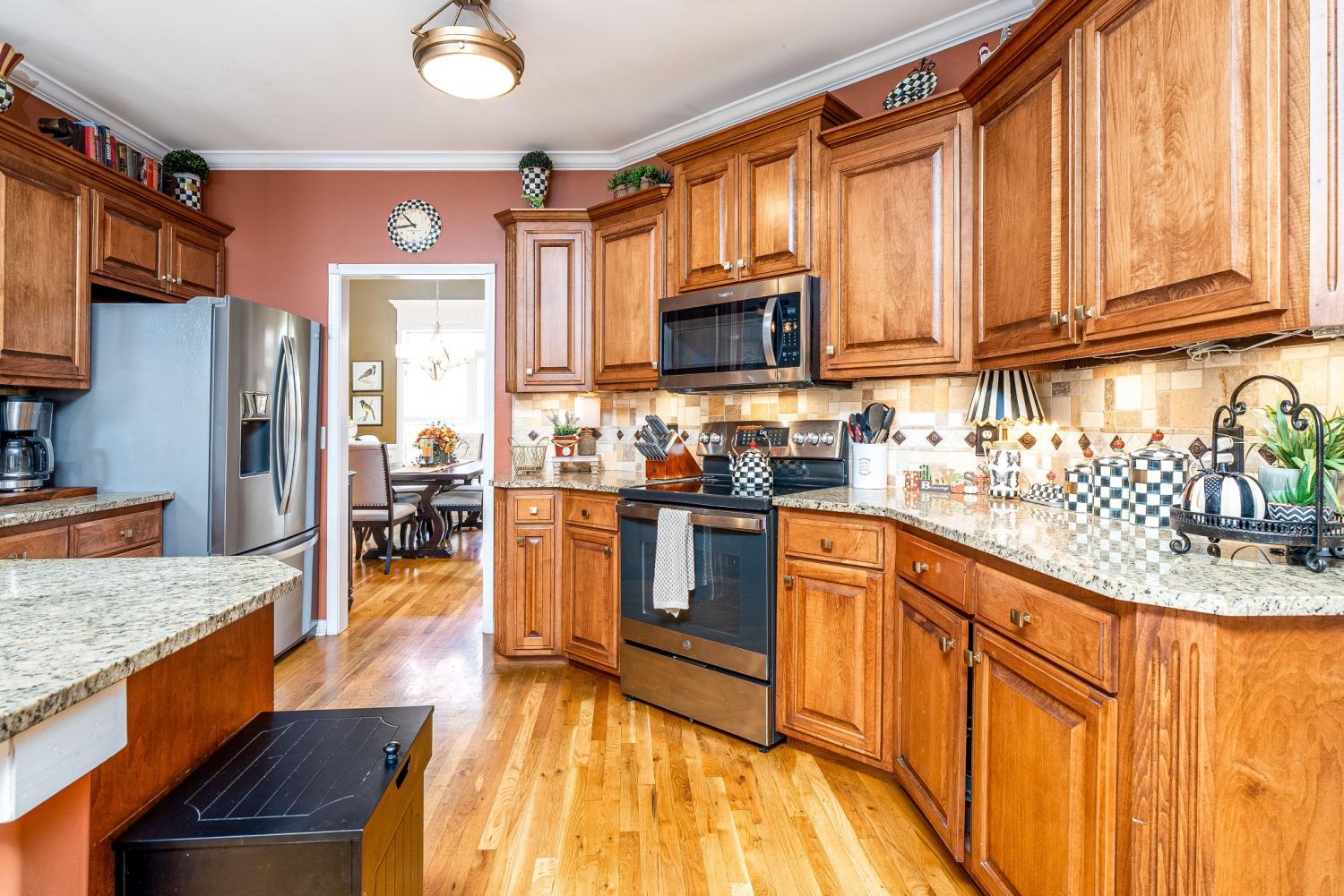 Lovely corner lot in the desirable neighborhood of Crowne Pointe offers up a fabulous all brick beauty complete with a fenced in larger back yard w/in ground pool-an attraction to anyone that enjoys swimming and outdoor living. The home is all one story w/oversized bonus room above the garage. Step inside to class, character and warmth and take in rich tones of real hardwood flooring, crown molding, soaring ceilings and an open floor plan . The updated and modern custom kitchen w/maple cabinets and tons of granite counter tops is a chef's dream. The oven is electric but there is a gas valve present behind the stove that can be reconnected. A kitchen nook is perfect for breakfast time and a formal dining room is offered for special occasion. The master bedroom has a grand feel w/lovely trey ceiling and bay window w/views of the pool complimented by the ensuite w/separate tub and shower plus new LVP flooring. The secondary bedrooms are opposite of the home and shared bath is accessible to both. Don't miss the upstairs bonus room. It is currently being used as entertainment with a full size pool table (can remain). Room is so spacious and there is opportunity to add a bath if needed. Pool is 7 years old.
