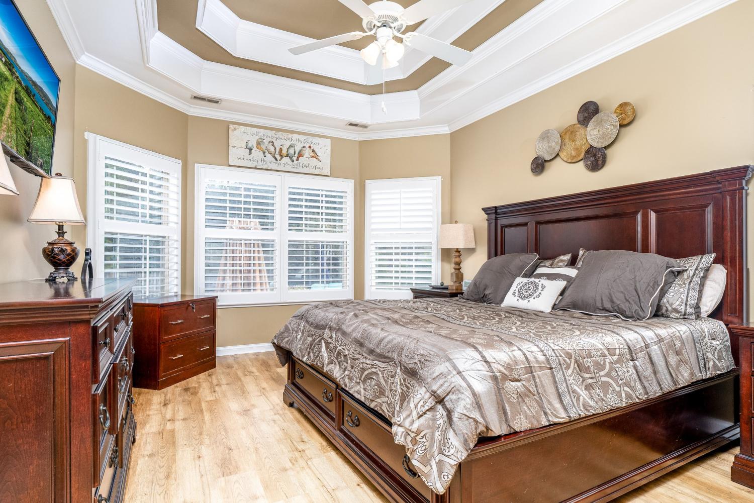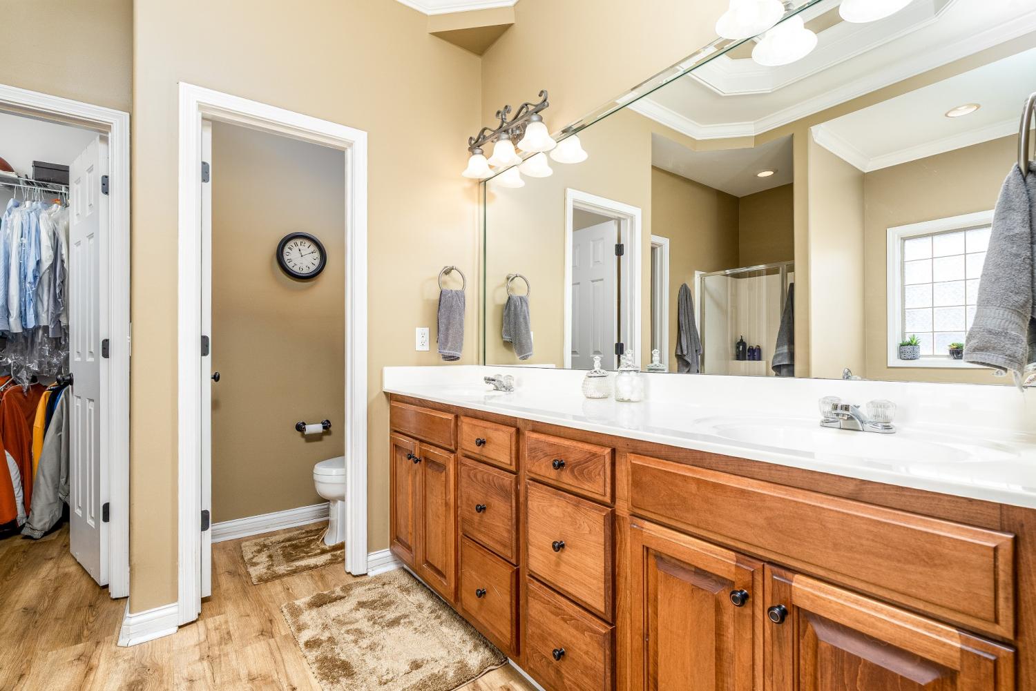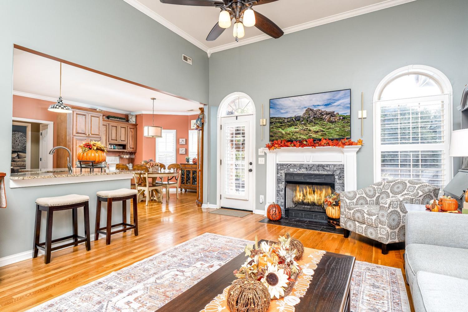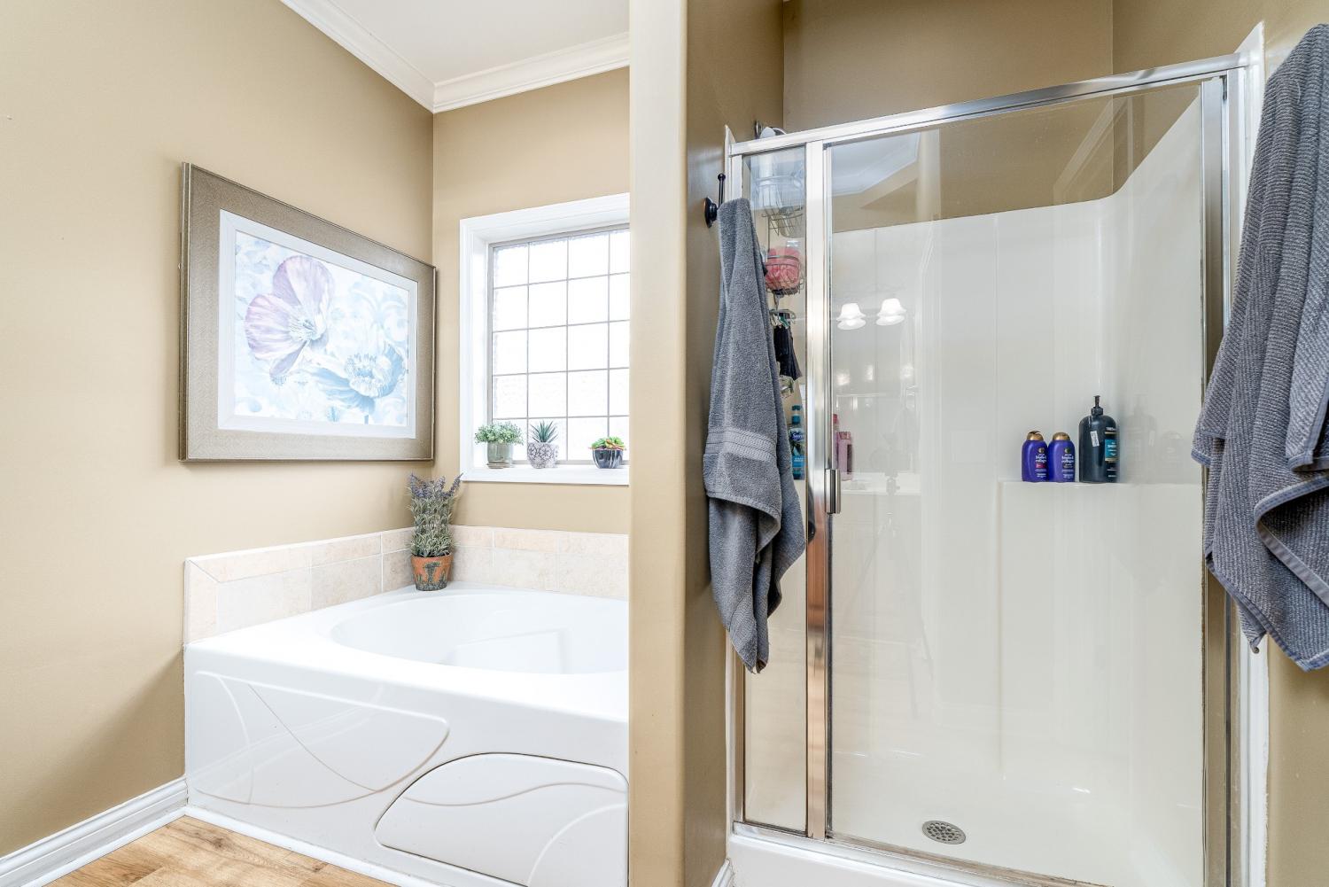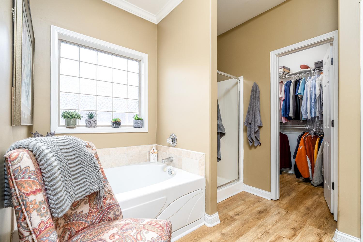 Lovely corner lot in the desirable neighborhood of Crowne Pointe offers up a fabulous all brick beauty complete with a fenced in larger back yard w/in ground pool-an attraction to anyone that enjoys swimming and outdoor living. The home is all one story w/oversized bonus room above the garage. Step inside to class, character and warmth and take in rich tones of real hardwood flooring, crown molding, soaring ceilings and an open floor plan . The updated and modern custom kitchen w/maple cabinets and tons of granite counter tops is a chef's dream. The oven is electric but there is a gas valve present behind the stove that can be reconnected. A kitchen nook is perfect for breakfast time and a formal dining room is offered for special occasion. The master bedroom has a grand feel w/lovely trey ceiling and bay window w/views of the pool complimented by the ensuite w/separate tub and shower plus new LVP flooring. The secondary bedrooms are opposite of the home and shared bath is accessible to both. Don't miss the upstairs bonus room. It is currently being used as entertainment with a full size pool table (can remain). Room is so spacious and there is opportunity to add a bath if needed. Pool is 7 years old.