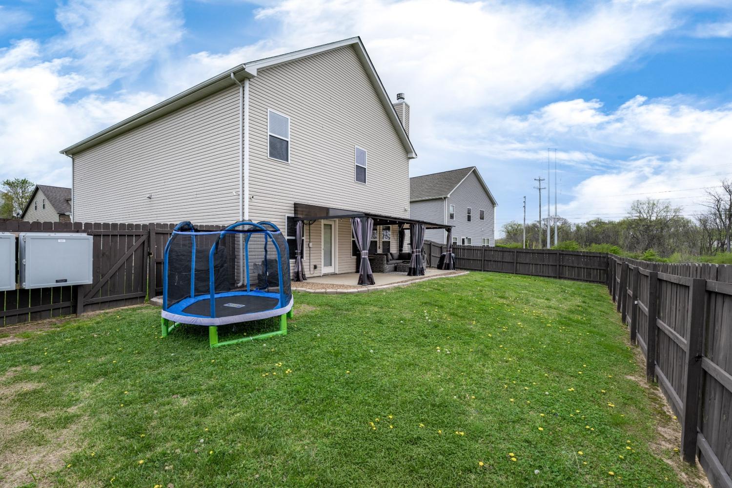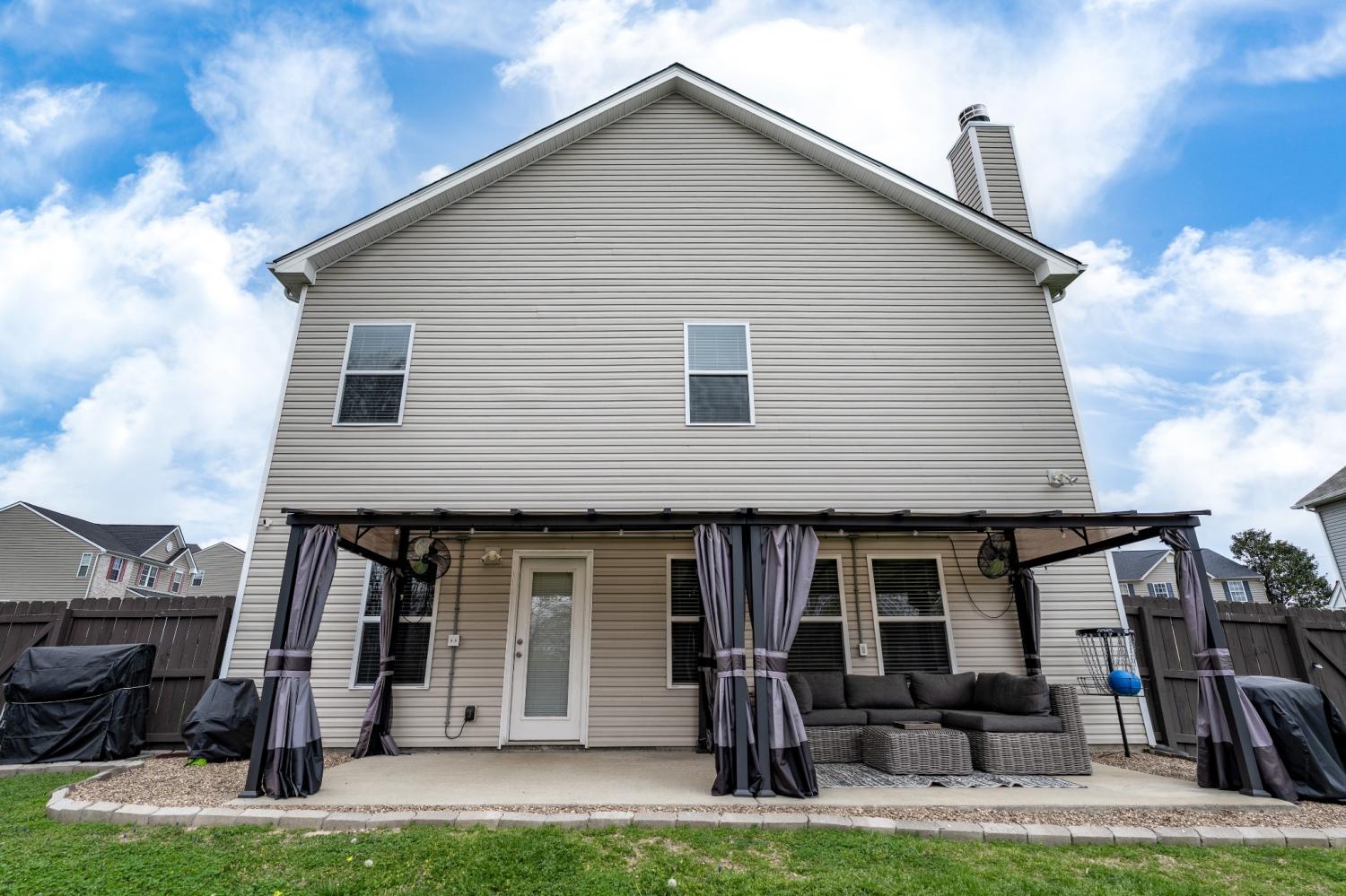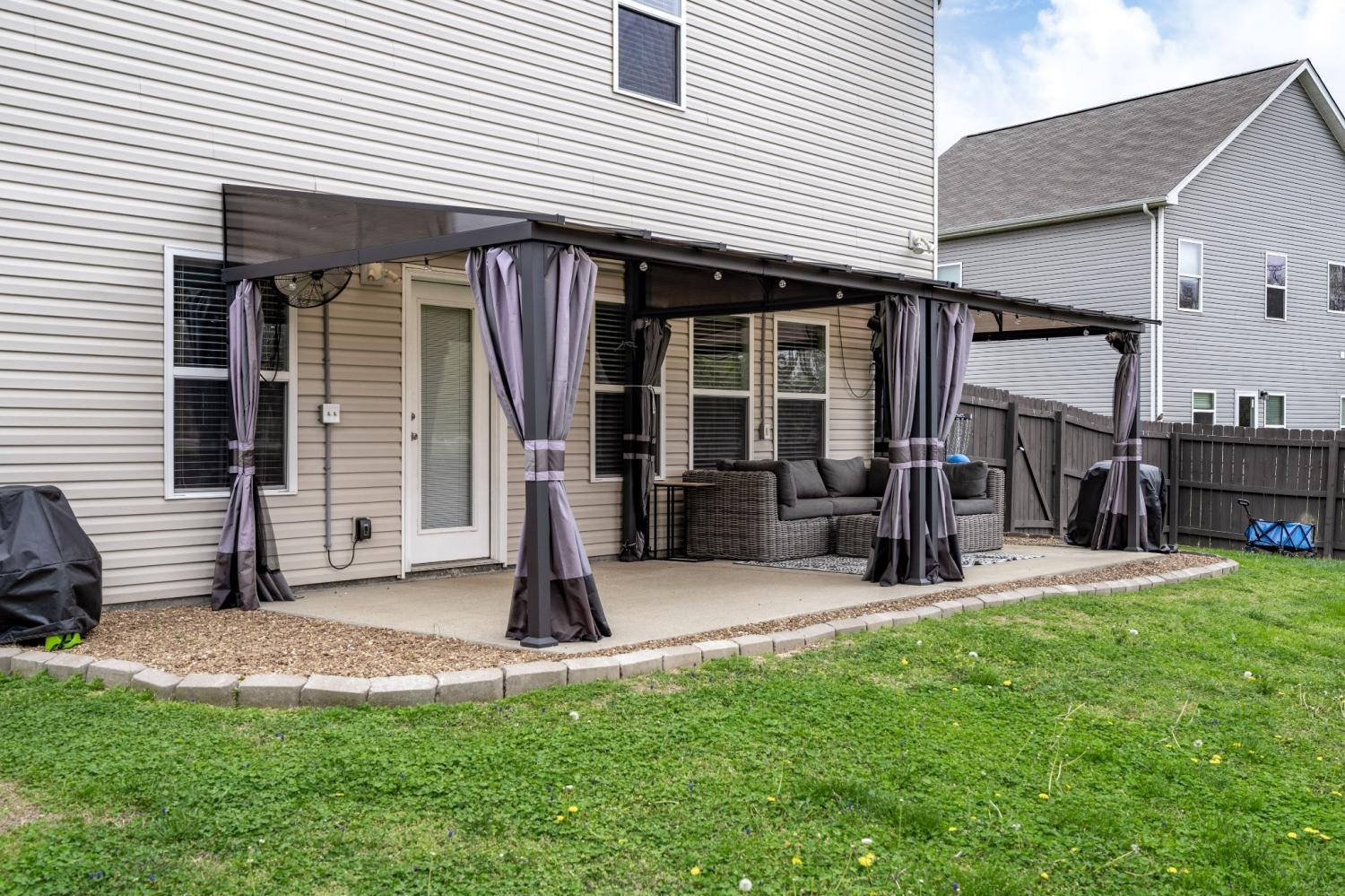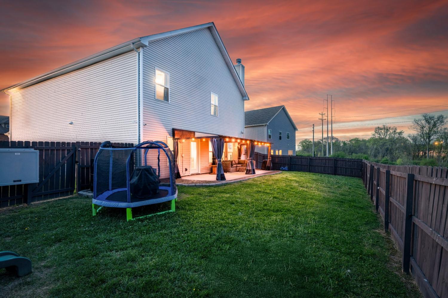 2018 Build- Roof and HVAC approx. 8yrs old. Permanent outdoor gutter accent/security lighting with customizable colors and settings. Once inside the home you'll find a nice entry hallway with wainescoting and an office or playroom to the left with glass french doors. Down the hall step into OPEN concept kitchen/living/dining room with water and scratch resistant laminate hardwood flooring. The living room layout leaves plenty of space for larger sectional, yet feels cozy with wood burning fireplace. Kitchen has large island, coffee bar, upgraded lighting, custom cabinets plus pantry. There is a mudroom off the garage with a functional built in with hangers for shoes and backpacks complete with a storage bench. The closet in the mudroom provides unfinished under stair access for storage and/or inclement weather. All bedrooms and the laundry room are upstairs. Don't miss the 21x18 MASTER SUITE-bring all the large furniture you want. It is so spacious and offers room for sitting area or favorite exercise machine. You will LOVE the custom closet with built in organizers. Sellers are offering a flooring allowance to replace the upstairs carpet and stairway. This home has plenty of closet space and storage. If you love the outside, check out dual entry and solid stained privacy fence for keeping animals and kids scecure. 10' x 24' covered concrete slab patio with a wood lined view that cannot be developed upon. Perfect area for neighbors to gather or little ones to run around. Play house and swing set do not remain. You won't have to worry about cleaning because the home has been freshly cleaned inside and out. Come take a private tour or call me for yours!!!