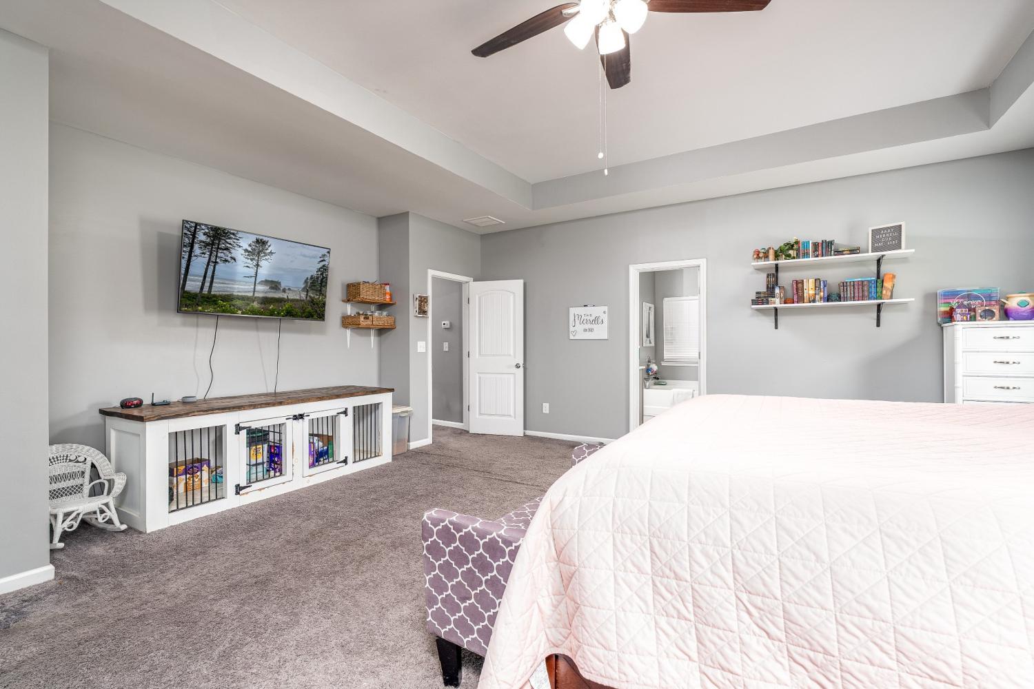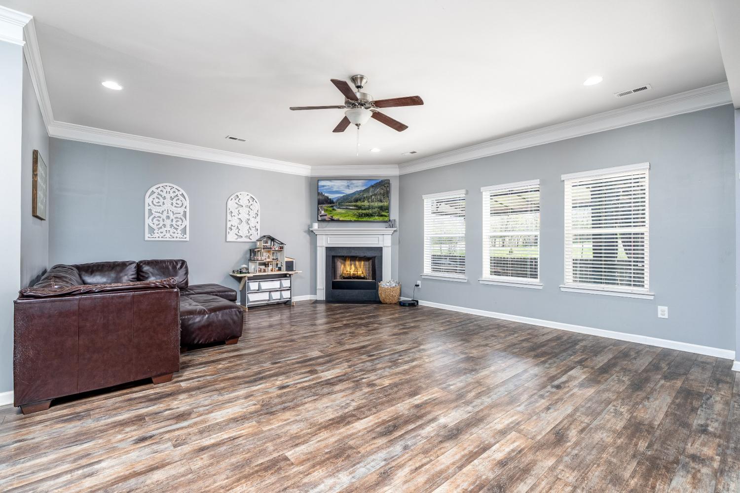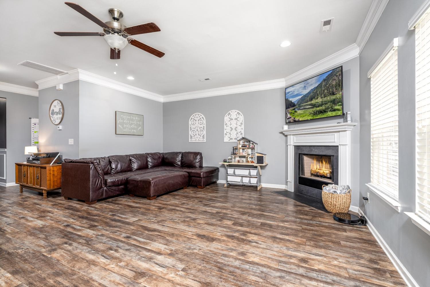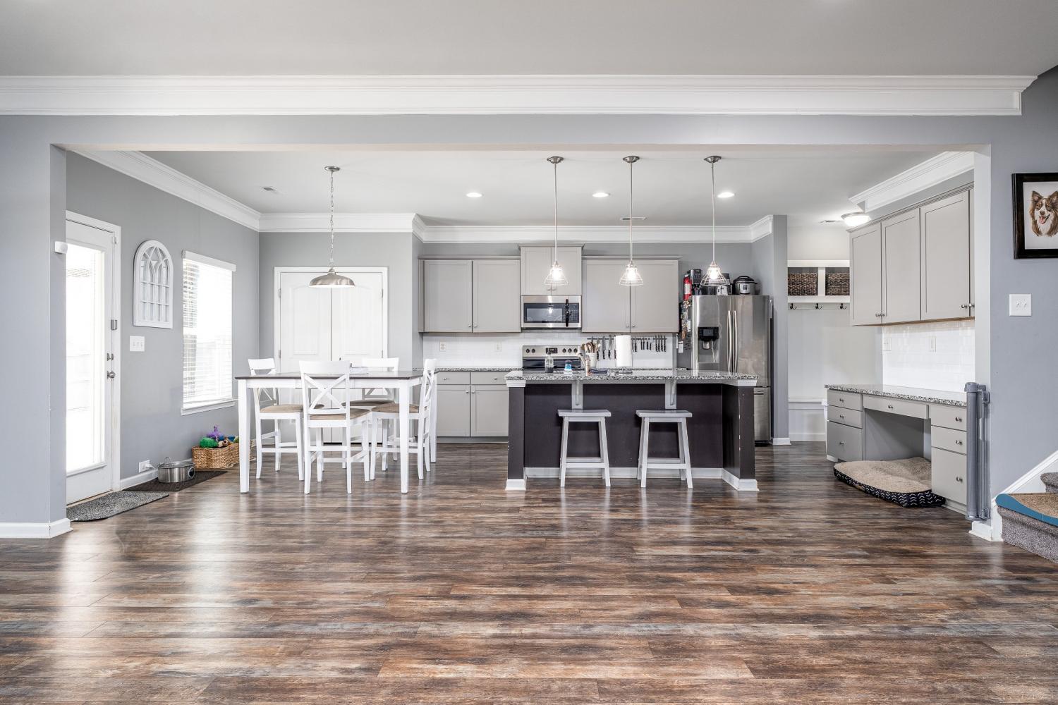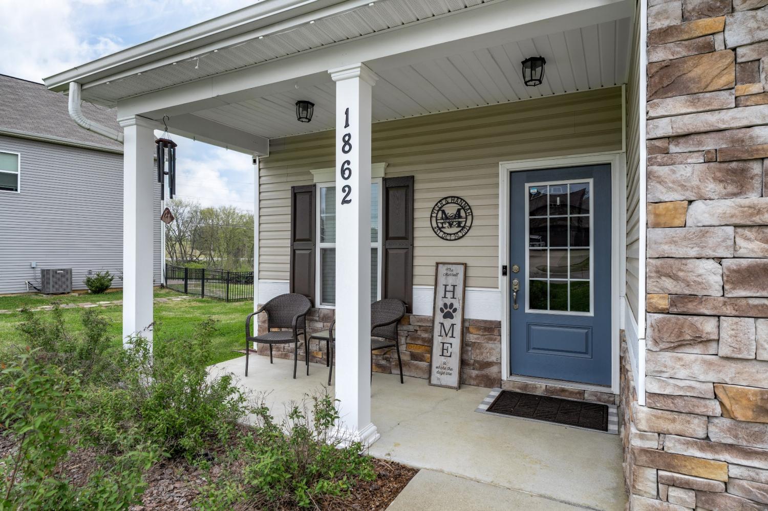 2018 Build- Roof and HVAC approx. 8yrs old. Permanent outdoor gutter accent/security lighting with customizable colors and settings. Once inside the home you'll find a nice entry hallway with wainescoting and an office or playroom to the left with glass french doors. Down the hall step into OPEN concept kitchen/living/dining room with water and scratch resistant laminate hardwood flooring. The living room layout leaves plenty of space for larger sectional, yet feels cozy with wood burning fireplace. Kitchen has large island, coffee bar, upgraded lighting, custom cabinets plus pantry. There is a mudroom off the garage with a functional built in with hangers for shoes and backpacks complete with a storage bench. The closet in the mudroom provides unfinished under stair access for storage and/or inclement weather. All bedrooms and the laundry room are upstairs. Don't miss the 21x18 MASTER SUITE-bring all the large furniture you want. It is so spacious and offers room for sitting area or favorite exercise machine. You will LOVE the custom closet with built in organizers. Sellers are offering a flooring allowance to replace the upstairs carpet and stairway. This home has plenty of closet space and storage. If you love the outside, check out dual entry and solid stained privacy fence for keeping animals and kids scecure. 10' x 24' covered concrete slab patio with a wood lined view that cannot be developed upon. Perfect area for neighbors to gather or little ones to run around. Play house and swing set do not remain. You won't have to worry about cleaning because the home has been freshly cleaned inside and out. Come take a private tour or call me for yours!!!